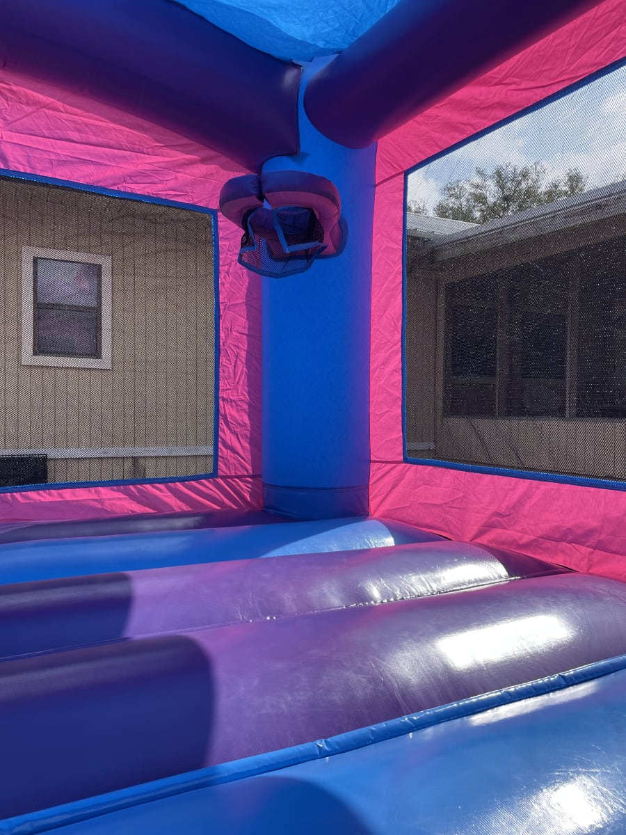 Turn your child's dream into a fairytale reality with our enchanting Princess Party bounce house! Designed in delightful shades of pink, blue, and purple, this princess castle bounce house creates the ultimate backdrop for birthdays, family gatherings, or community events. With its spacious interior and built-in basketball goal, it's the perfect combination of fun, exercise, and imagination for kids of all ages.