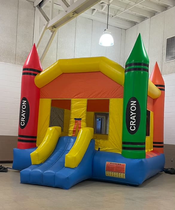Looking for an exciting centerpiece for your next party or event? The Crayon Jump bounce house is the perfect addition for guests of all ages! Bursting with vibrant colors and featuring a built-in basketball goal, this interactive inflatable promises hours of safe, active fun for kids and adults alike. 🏀🎉