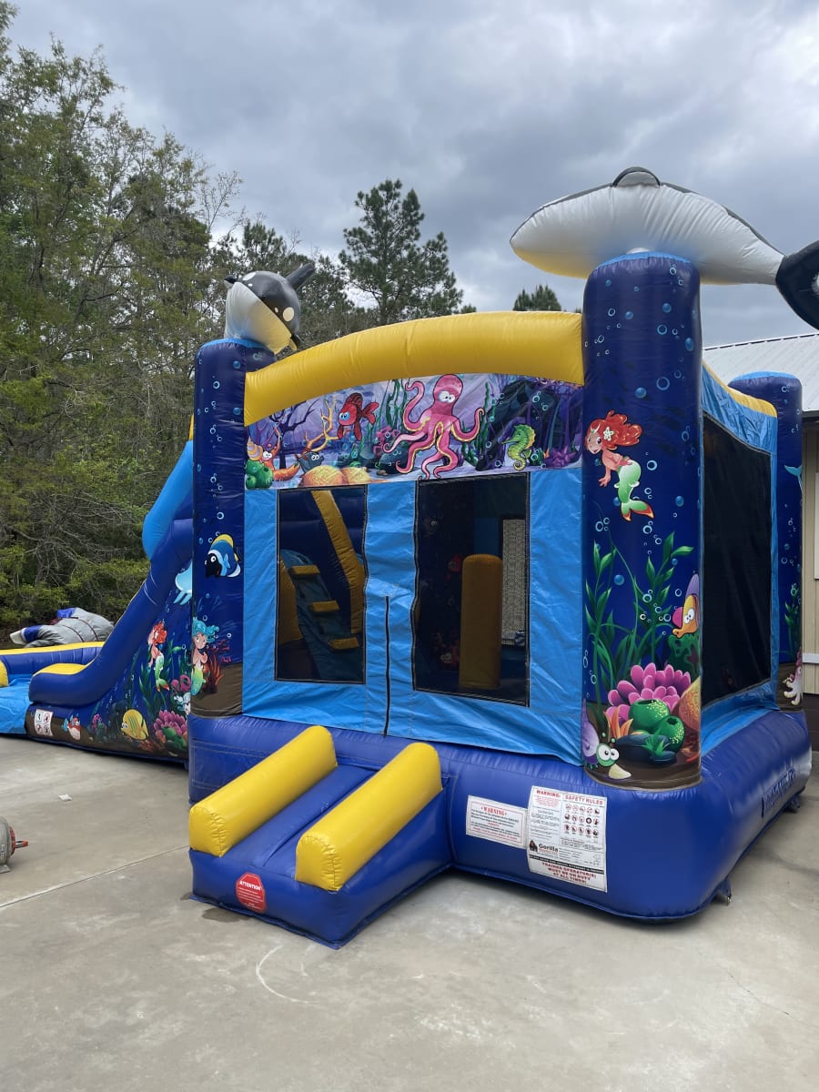 Take advantage of our hassle-free bounce house rental Under the Sea in Glynn County with free delivery and professional setup included! We also proudly offer bounce house rental Under the Sea in Camden County, Brantley County, Wayne County, and McIntosh County. Our team ensures on-time delivery, complete setup, and prompt takedown, so all you have to do is enjoy the fun!