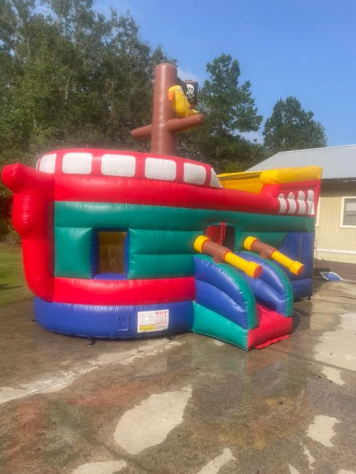 We proudly offer bounce house rental Pirate Ship Combo in Glynn County, Camden, Brantley, Wayne, and McIntosh, making it easy for families and organizations across the area to add excitement to their celebrations. Enjoy free delivery anywhere in Glynn County, with affordable service to all surrounding counties. Our team handles the setup and breakdown, so you can focus on having fun!