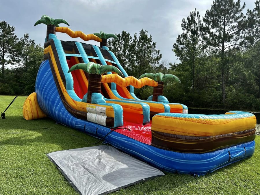 Enjoy a seamless experience from start to finish. We offer water slide rental 18 ft Tropic Shock in Glynn County, Camden, Brantley, Wayne, and McIntosh with free setup and delivery in Glynn County. Our friendly and professional team ensures your water slide is safely installed and ready for hours of splashing fun. Make your event memorable without any of the stress!